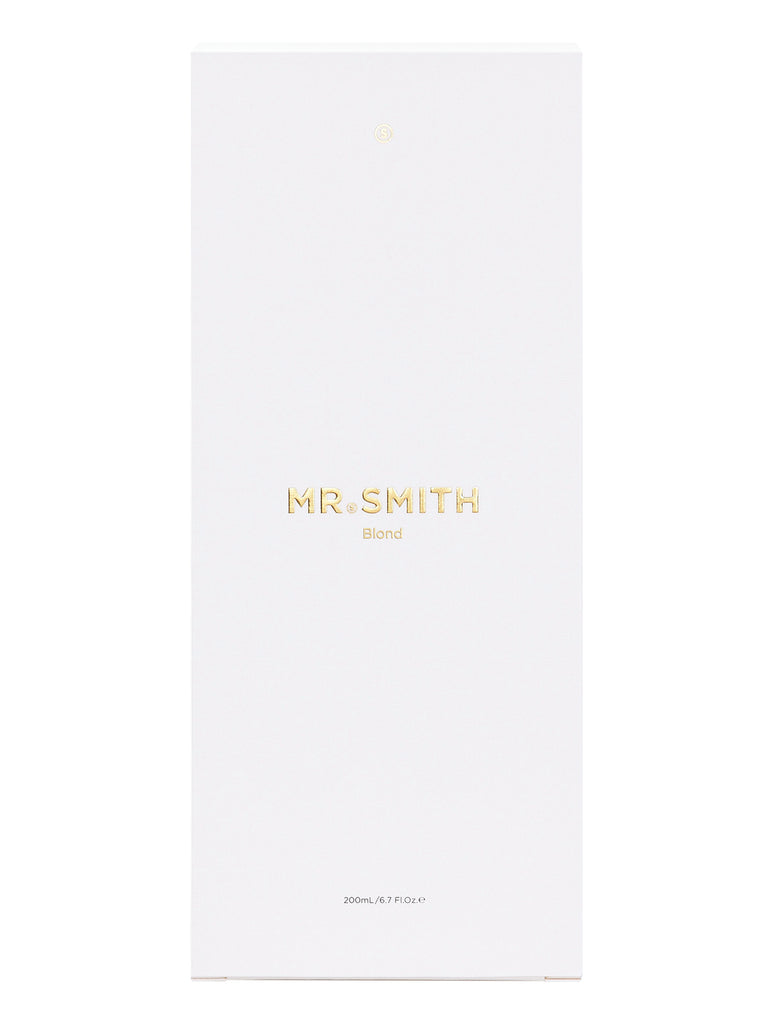 Mr. Smith's Blond verbetert de kleur door gele en koperachtige tonen van gebleekt en gekleurd haar te verwijderen. Amandel-, lavendel- en sinaasappelschilolie kalmeren de hoofdhuid en verrijken het haar met vitamines die helpen beschadigde cellen te herstellen.